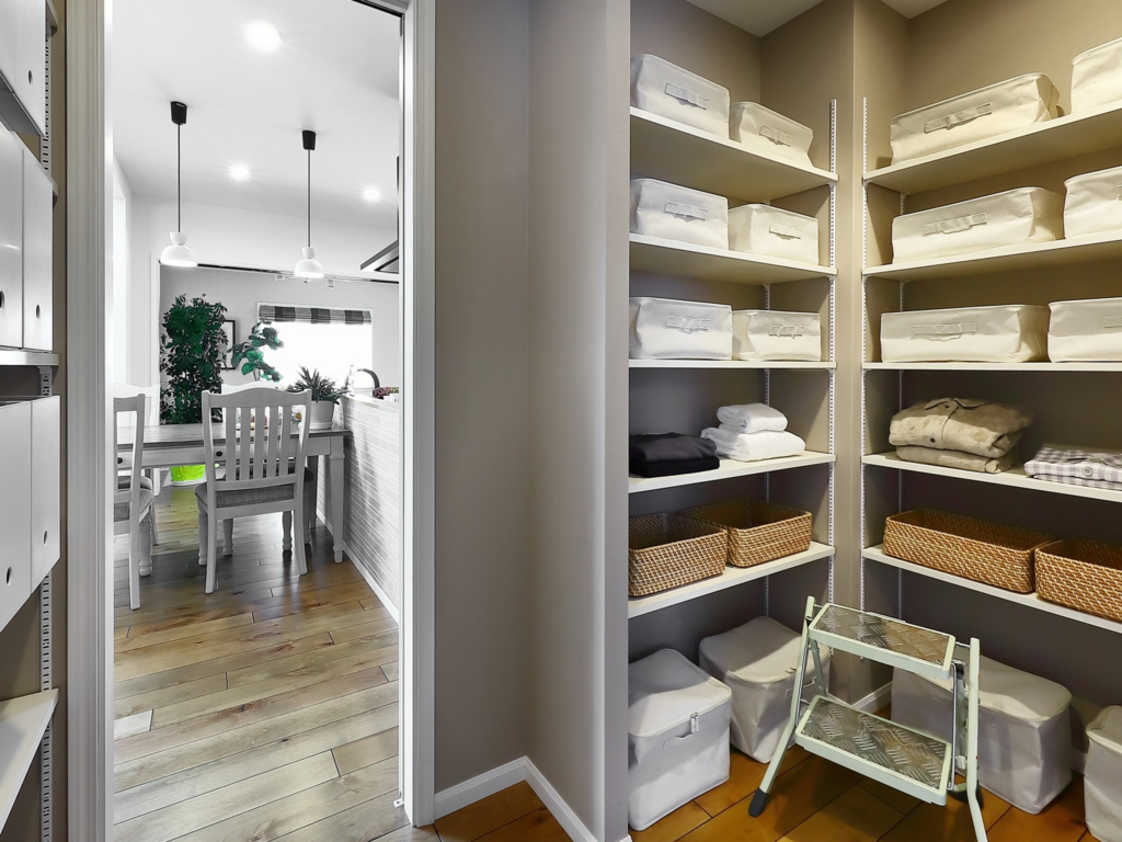 パントリー(2帖)、ウォークインクローゼット(3帖)、屋根裏を活用した収納(3帖)など、広々とした収納を各所に配置し、すっきりとした暮らしができます