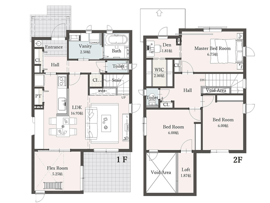 色んな使い方ができるフレックスルームは、ロフトから2階にもつながる設計