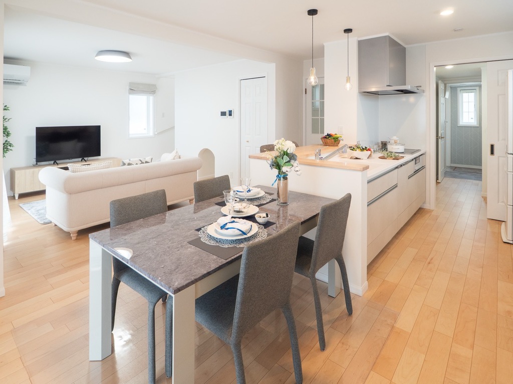 リビング・ダイニングと面したカウンターキッチンは、キッチンに居ながらもリビングにいる家族とお話がしやすい自然に会話が増える設計になっています♪