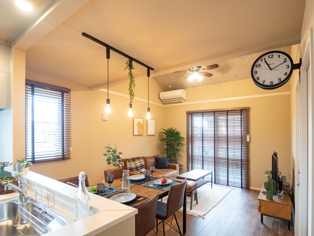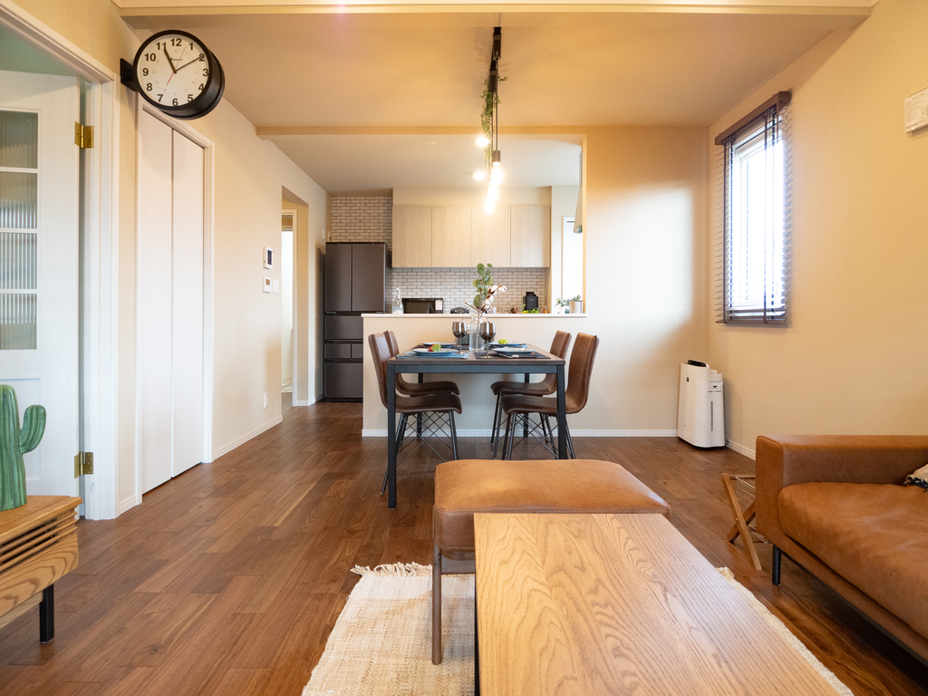 リビング・ダイニング・キッチンをゆるやかにつなげたLDKは、家族がどこにいても気配を感じられる心地よい空間。